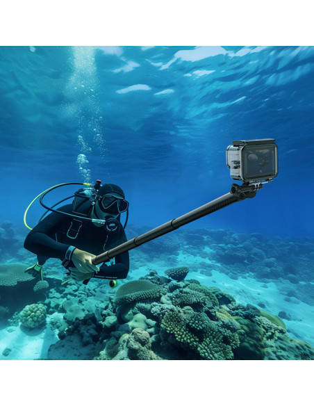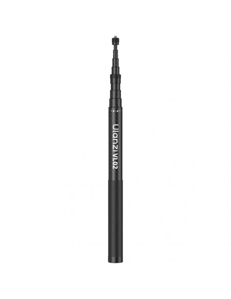 Drone shots, within reach! Take the Ulanzi VL02 Carbon Fibre Selfie Stick (2.7m) with you wherever you go. Combine it with a panoramic sports camera for drone like shots without a drone! Effortlessly capture stunning aerial shots, tracking shots and panoramic shots. Highlights Ultra lightweight and comfortable for long term use. Sturdy construction, does not bend under load. 8 piece adjustable length, flexible for every need. Rotatable locking mechanism, smooth extension, no pinching. Compact storage size of 41 cm and 1/4â mount â universal compatibility. Extendable to 2.7 m, shoot with ease! Easily adjustable from 41 cm to 277 cm! The unique tube design ensures smooth, stable adjustments, no wobbling, just perfect control. It folds down to just 41 cm, making it compact and ready to travel! Stable support up to 800 g The VL02 is made of high quality carbon fibre and supports up to 800 g, providing sturdy and stable support even when fully extended. The VL02 comes with a non slip silicone handle and a wrist strap for extra peace of mind during use. Robustly built for any environment, even underwater The VL02 is made of durable materials such as aluminium alloy, carbon fibre and silicone and is perfect for shooting in all conditions, even underwater! *After exposure to seawater, rinse the product with fresh water and dry it in a shaded, well ventilated area. Expand your creativity with the 1/4â screw thread Attach tripods, gimbals and more with the 1/4â screw thread on the bottom â endless possibilities for your creative shots., Material: aluminium alloy + carbon fibre + PA + POM Folded dimensions: Φ3.5 cm x 41 cm Unfolded dimensions: Φ3.5 cm x 277 cm Weight: 324.6 g Load capacity: 800 g Number of parts: 8 , 1 x Ulanzi VL02 Carbon Fibre Selfie Stick (2.7 m) 1 x Phone clamp 1 x Action camera adapter 1 x Wrist strap