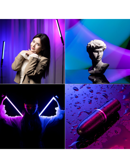 The compact handheld tube light The Ulanzi VL119 RGB Hand Held Tube Light offers RGB color selection, adjustable color temperature from 2500K to 9000K and brightness from 0 to 100% and a wide choice of twenty special effects. The compact, lightweight lamp easily holds in your hand or mounts on a tripod. Highlights Compact and easy to hold in your hand Color temperature of 2500 9000K Dimmable from 0 to 100% LED The Ulanzi VL119 RGB Tube Light is composed of 114 LEDs: 38 white, 38 yellow and 38 RGB LEDs. User friendly An OLED screen reads settings and remaining power. Mount the light via the 1/4" connector on your tripod or easily hold it in your hand for long periods of time thanks to its handle and low weight of only 205 grams. Power supply The Ulanzi VL119 has a built in battery with a capacity of 2600mAh. You can fully charge this in 2 hours via USB C. Fully charged, the lamp lasts 70 minutes at the highest brightness. Special effects Get your creativity flowing with the twenty special effects offered by the Ulanzi VL119 RGB Tube Light. You can choose from: Police Car, Ambulance, Fire Department, Lightning, Fireworks, TV, Candle, Party, Defective Light Bulb, Pulsating, Flash, RGB Flash, Paparazzi, Emergency, H/L light beam, Red flash, Green flash, Blue flash, HSI fast and HSI slow., Color temperature from 2500 9000K Dimmable from 0 to 100% With 20 special effects Charging via USB C Fully charged in 2 hours 38 white, 38 yellow and 38 RGB LEDs Attach via 1/4" 20 connection Handheld Operating time of 70 minutes , 1 x Ulanzi VL119 RGB Hand Held Tube Light