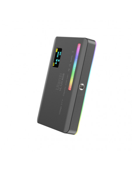 For all your creativity The Ulanzi VL120 RGB LED Video Light is an LED panel for your camera. The video light offers RGB color selection, adjustable color temperature from 2500K to 9000K and brightness from 0 to 100% and a wide choice of twenty special effects. You can easily take the compact, lightweight lamp with you. Highlights Full color RGB video lamp Compact and lightweight 20 types of lighting effects LEDs The Ulanzi VL120 RGB LED video light is composed of 120 LEDs: 42 white, 42 yellow and 36 RGB LEDs. User friendly An OLED screen lets you read settings and remaining power. Mount the lamp on your camera with the included cold shoe adapter or place it on a tripod via the 1/4 connection. Power supply The Ulanzi VL120 has a built in battery with a capacity of 3100mAh. You can fully charge this in 2.5 hours via USB C. Special effects Help your creativity take off with the twenty special effects offered by the Ulanzi VL120 RGB LED Video Light. You can choose from: Police Car, Ambulance, Fire Department, Lightning, Fireworks, TV, Candle, Party, Defective Light Bulb, Pulsating, Flash, RGB Flash, Paparazzi, Emergency, H/L light beam, Red Flash, Green Flash, Blue Flash, HSI fast and HSI slow., Model: VL120RGB Color temperature: 2500 9000K Lamp beads: white 42PCS/yellow 42PCS/RGB36PCS CRI: 95+ Working voltage: 3.7V Charging: Type C Battery capacity: 3100mAh_ illumination angle: 120° luminance:Distance: 03m 0.5m 1m, Brightness: 1250LUX 550LUX 180LUX Charging time: about 2.5 hours Weight: 120g , 1 x Ulanzi VL120 RGB LED Video Light 1 x Diffuser 1 x 1/4" 20 to cold shoe adapter 1 x USB Type C cable 1 x User Guide