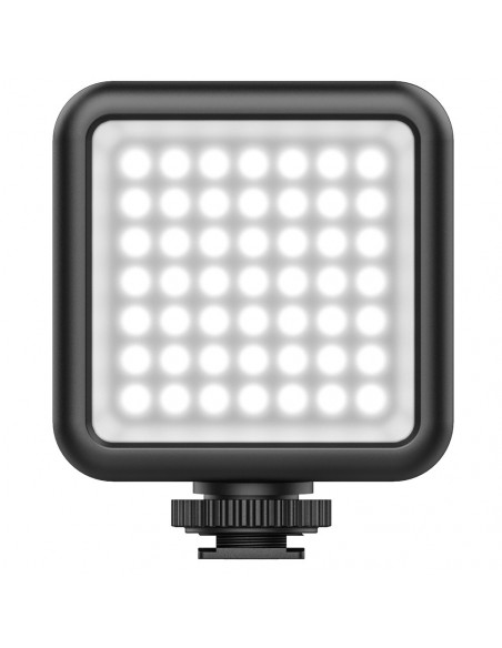 Small powerhouse Add soft light to your camera or rig with the Ulanzi VL49 Mini LED Video Light. The VL49 is a compact 49 LED RGB light is ideal for use with DSLRs, system cameras, video cameras and smartphones. The light is so light that you can easily add multiple VL49 lights to your rig without adding much weight. Highlights Compact, dimmable RGB LED light Ideal for DSLRs, system cameras, video cameras and smartphones. Accurate color reproduction Accurate color reproduction The VL49 features a 0 to 100% dimmer button and an integrated diffusion filter for soft light. The lamp offers multiple color modes, as well as brightness and hue adjustments for various creative possibilities. The lamp has a 120° beam angle, 800 lux brightness at 0.5m, variable color temperature from 2700 to 5500K for multiple colors and a CRI of 95+ for accurate color rendering. Up to 10 hours of battery life The lamp is powered by an internal 2000mAh li ion battery. You charge the lamp via the included USB C cable. The lamp lasts about 2 hours on the lowest dimmer setting and up to 5 hours on the highest brightness. You can read the color temperature and battery status on the mini color display on the back. Flexible uses With the cold shoe mount and 1/4" 20 tripod connection, you have a choice of mounting options. The lamp also has 3 additional cold shoe mounts for attaching multiple VL49 lamps together to form a large LED panel. , Compact, dimmable RGB LED light For DSLRs, system cameras and smartphones Integrated soft diffuser, 800 lux Photometry: 6 fc /200 Lux at 3.3' / 1 m*; 74 fc / 800 Lux at 1.6' / 0.5 m Color temperature: 2700 to 5500K Standard color accuracy: CRI 95+ Dimming: Yes, built in dimmer 0 to 100% (stepped) Inputs/outputs: 1 x USB C Power Input Battery: 1 x rechargeable Lithium Ion, 2000 mAh (built in). 120 to 300 minutes runtime DC input power: 3.7 VDC Supplied adapter/cable: 1 x USB C to USB A cable Power consumption: 6 W (maximum) Fixture mounting: 1 x Accessory Base with 1/4" 20 female thread, 3 x Cold Shoe Dimensions: 7.5 x 6 x 2.3 cm , 1 x Ulanzi VL49 Mini LED Video Light