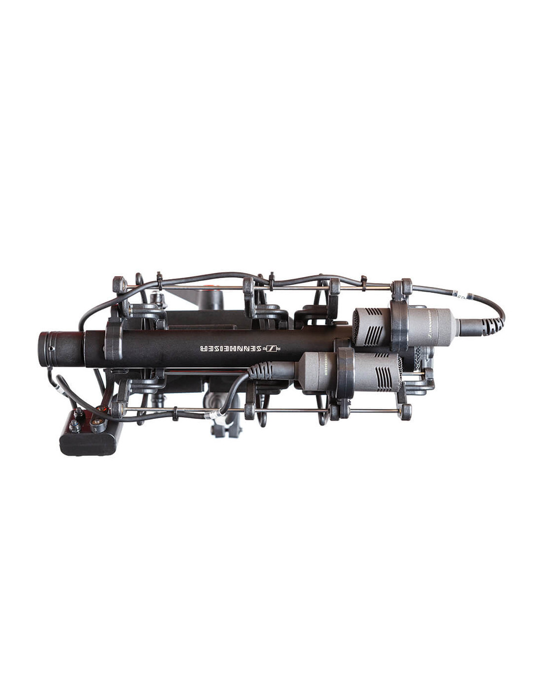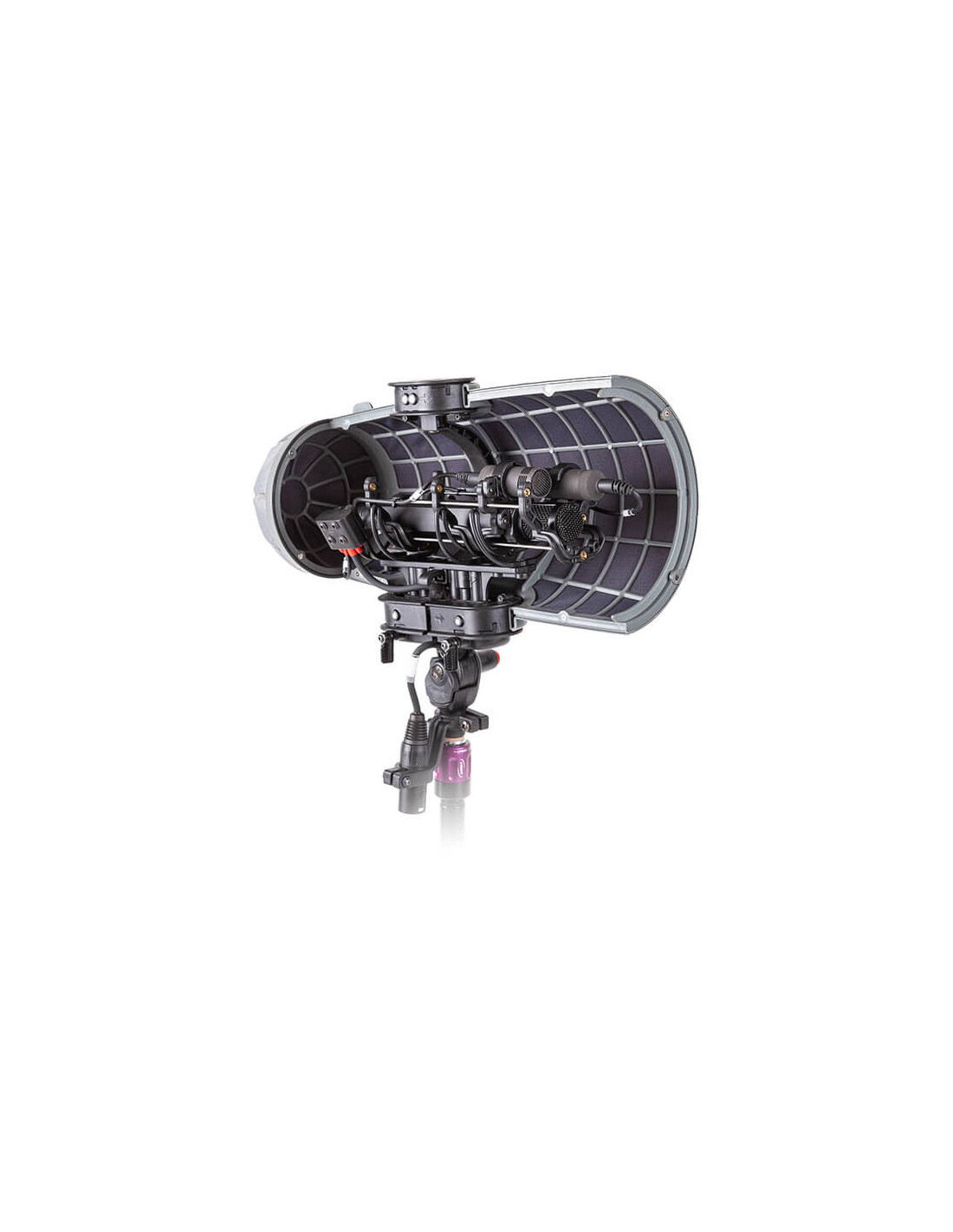 The Rycote Stereo Cyclone DMS Kit 3 for Sennheiser MKH 8040 Pair & MKH 30 is a windshield system offering acoustically transparent protection for location sound mixers and recordists using a pair of Sennheiser MKH 8040 microphones and a single MKH 30 in a double mid-side array in broadcast TV, film, video, and game audio production. It features an enhanced Connbox design with no straight or parallel surfaces to reduce room tone and resonance. Its Lyre mic suspension and Floating Basket Suspension improve vibration isolation and minimize handling noise. Specifications: Outer Diameter 4.4 to 6.2" / 11.3 to 15.7 cm Length 15.2" / 385 mm Weight 25.9 oz / 734 g Inputs 2 x MZL Female 1 x 3-Pin XLR Female Outputs 1 x 7-Pin XLR Male Mounting Thread 3/8"-16 Female Operating Temperature -5 to 100°F / -20 to 38°C