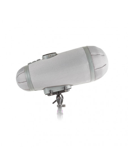 The Rycote Stereo Cyclone MS Kit 10 is a windshield system offering acoustically transparent protection for location sound mixers and recordists using a mid-side array of Sennheiser MKH 416 and Ambient Emesser microphones in broadcast TV, film, video, and game audio production. It features an enhanced Connbox design with no straight or parallel surfaces to reduce room tone and resonance. Its Lyre mic suspension and Floating Basket Suspension improve vibration isolation and minimize handling noise. The 3D-Tex material delivers significant attenuation of wind noise while being easy to clean. Further contributing to the system´s low maintenance is the magnetic locking design, which allows one-handed opening and closure. The XLR3F and TA3F inputs match the connectivity of your Sennheiser MKH 416 and Ambient Emesser microphones, and the XLR 5-pin output contributes to effective cable management. Boompole compatibility is offered via a brass 3/8" UNC female thread. Outer Diameter 4.4 to 6.2" / 11.3 to 15.7 cm Length 15.2" / 385 mm Weight 24.2 oz / 687 g Inputs 1 x 3-Pin XLR Female Right-Angle 1 x TA3 Female Outputs 1 x 5-Pin XLR Male Mounting Thread 3/8"-16 Female Operating Temperature -4 to 100°F / -20 to 38°C