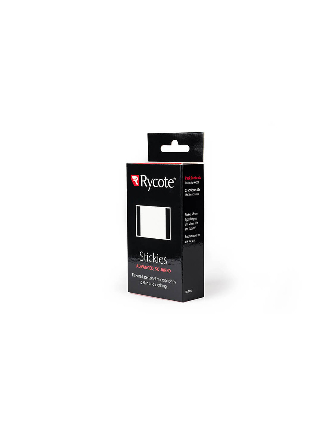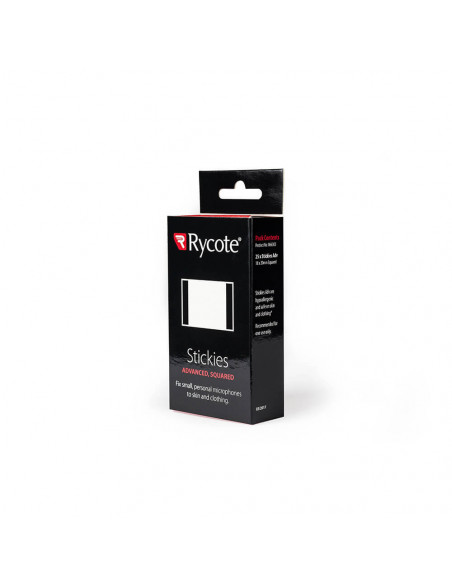 Stickies Advanced are double-sided, hypoallergenic, adhesive pads used to affix lavalier microphones directly onto skin or on top of clothing. The soft fabric sandwiched between the two adhesive pads prevents the adhered mic from creaking due to skin or clothing movement. Stickies Advanced are designed to remain secure when attached to a dry surface and are intended to be discarded after use.