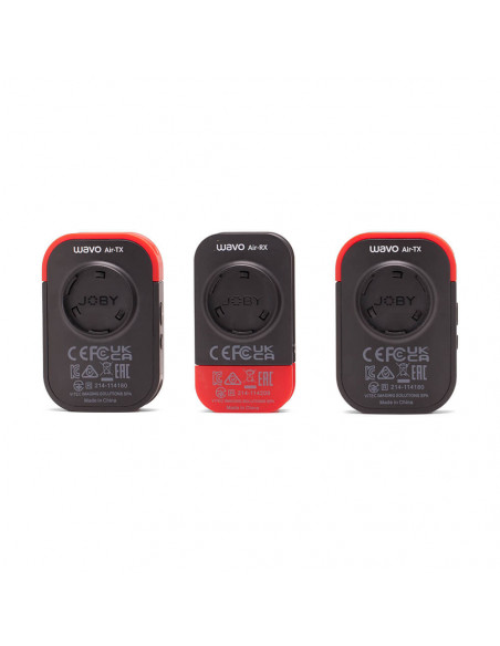 JOBY Wavo Air Includes 2x lav microphones and dual transmitter (TX) and a Wavo Air receiver (RX) and accessories.