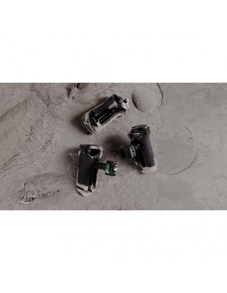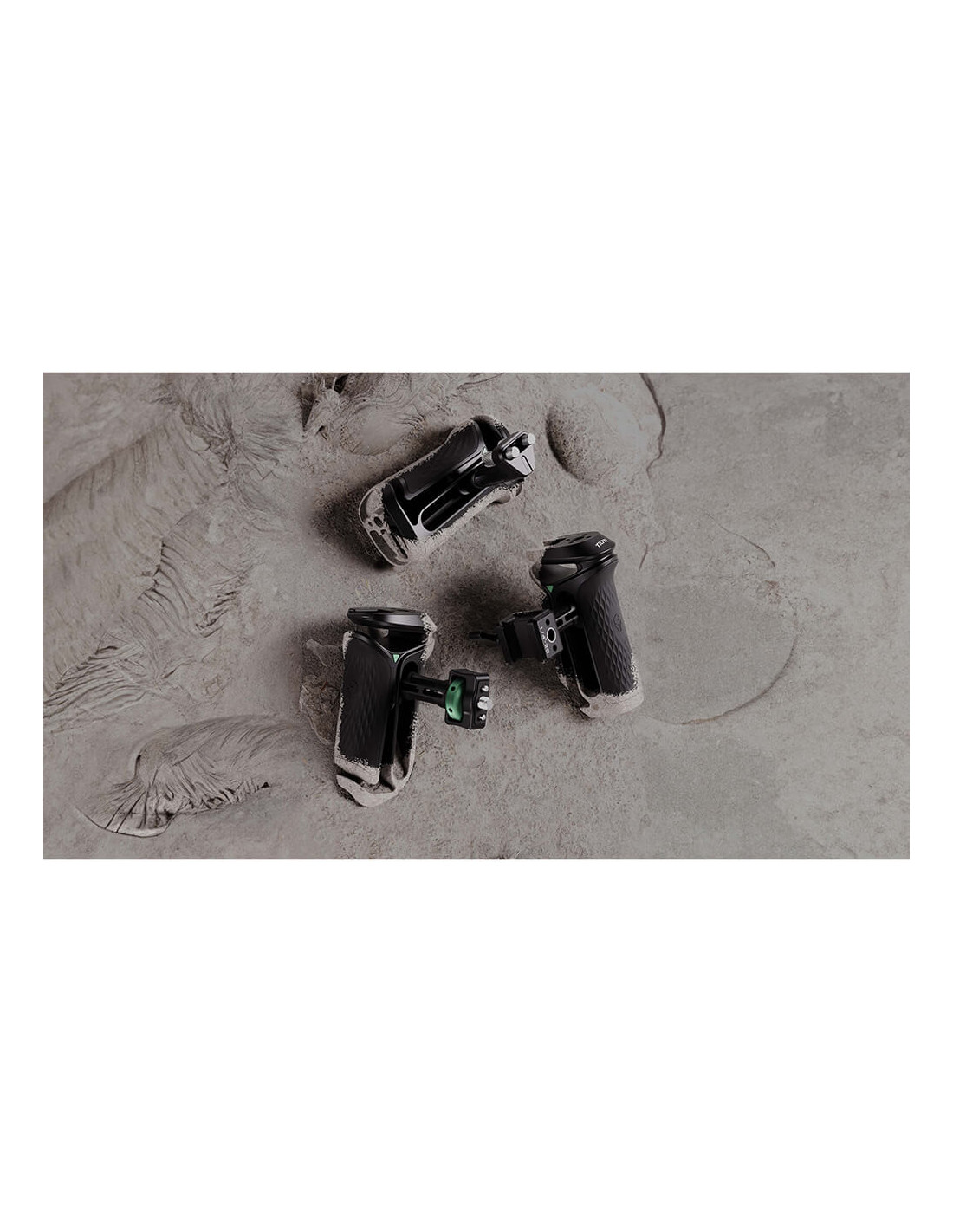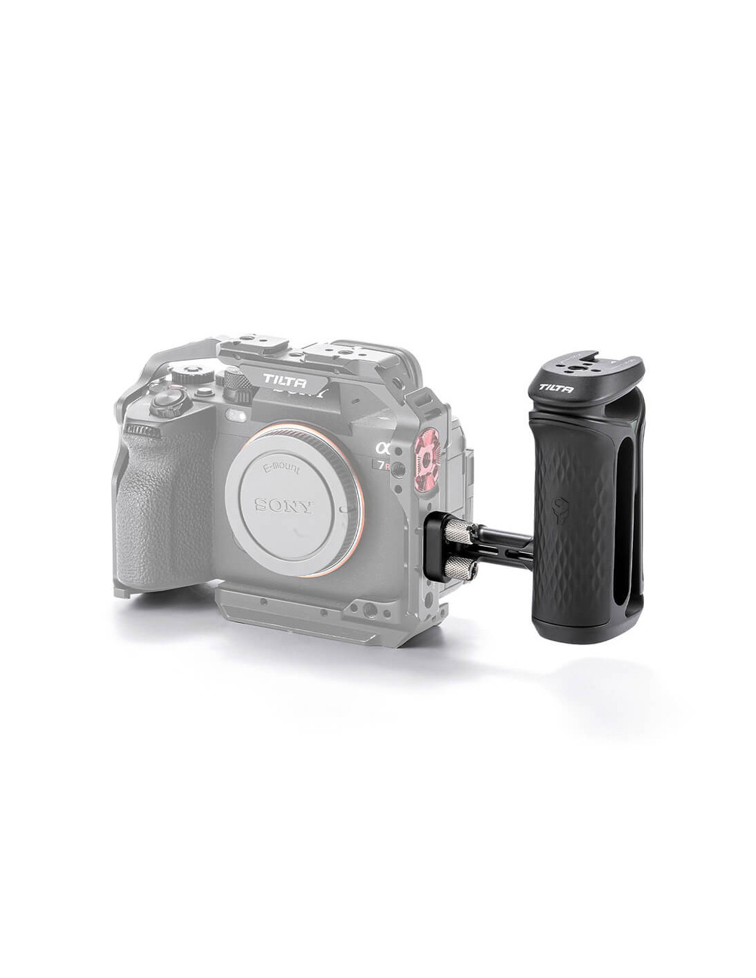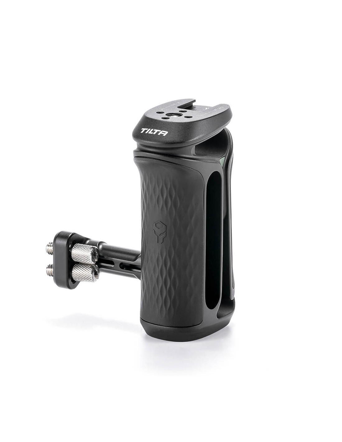 This side handle seamlessly blends strong aesthetics with ergonomic functionality, providing a comfortable and secure grip for users to operate their camera rig from. This version includes a connection type with two 1/4″-20 thumbscrews in order to mount the handle to a camera cage. This creates an incredibly secure connection while limiting rotation. Designed for versatility, the Xeno Side Handle can be mounted as both a left and right side handle. With an adjustable height of 40mm, users can tailor the handle to their preferred position, ensuring improved comfort when shooting handheld for any amount of time. The handle features non-slip silicone, which provides a textured grip that improves stability for a confident hold and features mounting points such as a Cold Shoe Receiver and a 1/4″-20 thread with locating points for additional accessories The built-in Allen Key ensures assembly or any adjustments are convenient for the handle or any other accessories, which is perfect for filmmakers who prioritize efficiency and flexibility. Upgrade your camera rig with the Tilta Xeno Side Handle, a perfect blend of futuristic design and practical functionality!