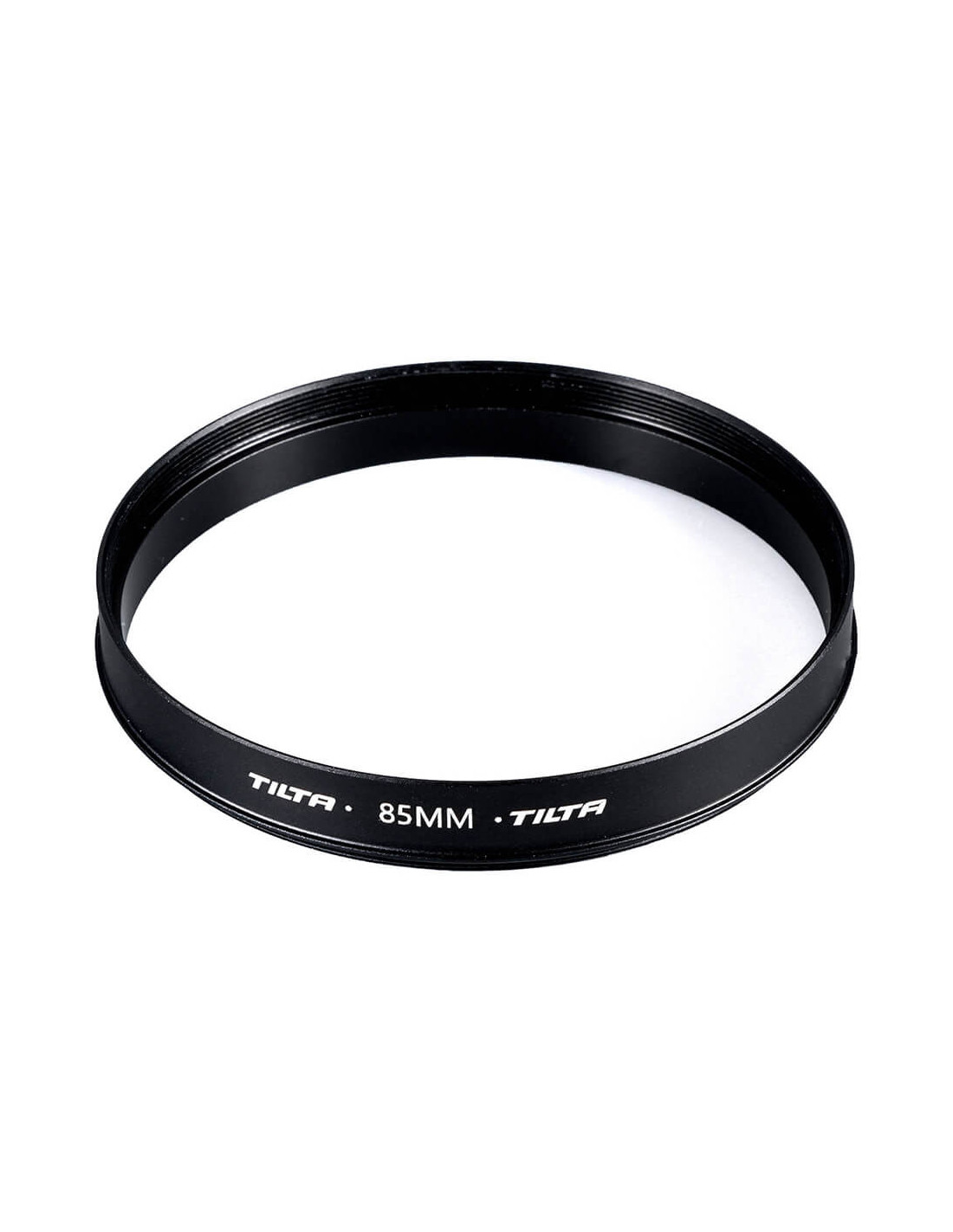 85mm Adapter Ring for Mini Clamp-on Matte Box This adapter ring for the Tiltaing Mini Clamp-on Matte Box is designed for lenses with a 85mm front diameter. You first attach the adapter ring to your lens and then the matte box clamps onto the adapter ring. Also, screw-on filters of the same diameter can be attached via the threading that’s on the inside of the adapter ring. Technical data Color: Black Materials: Aluminum-alloy