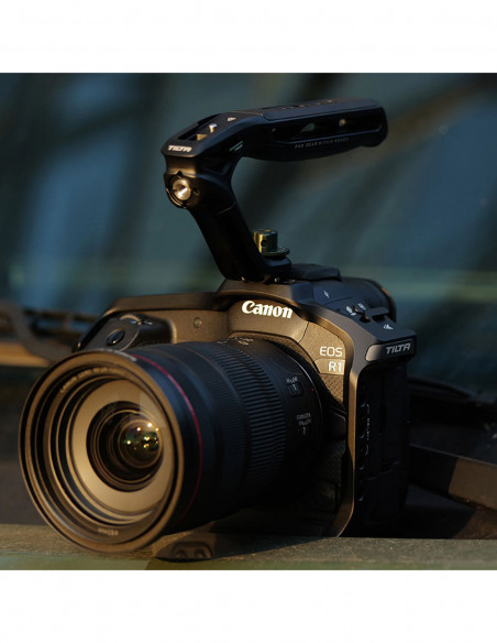 This camera cage from Tilta is custom designed for the Canon R1, offering flexibility and protection.