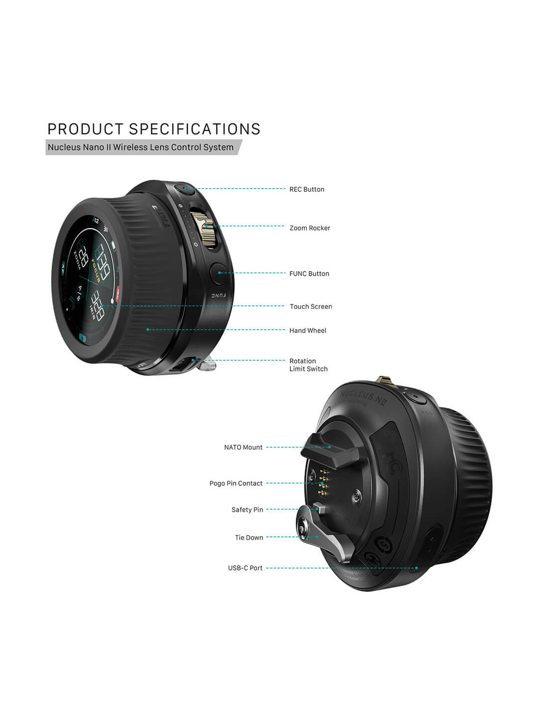 - Compatible with Nucleus M & Nano, DJI Focus Motors, RS2 & RS3 Pro Gimbals, as well as Cameras from Canon, Sony, Black Magic Design and More