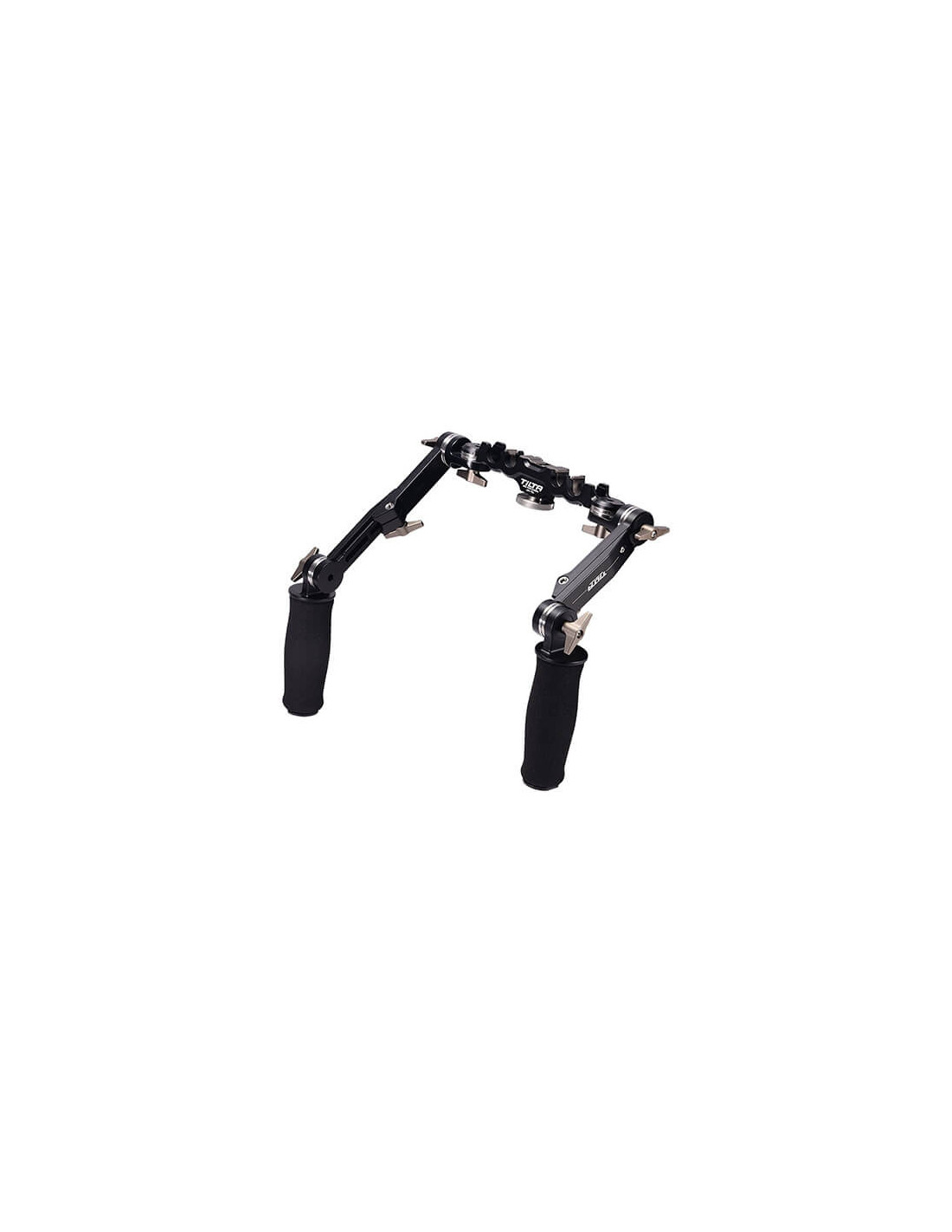 Universal Pro Hand Grip System This high strength universal hand grip system clamps directly onto the rods of your camera setup, allowing for super fast transitions from shoulder mounted operation to other camera mounts and back again. Simply snap the bridge onto the rods and lock it down via a tightening screw. This system comes in two different designs: one that offers mounting points to 15mm LWS and 15mm studio rod systems and another that offers mounting points to 15mm LWS and 19mm studio rod systems. This snap-on design ensures that you will not have to remove accessories that are already attached to the rods. The rig is extremely stable, solid, and durable. The hand grips have high density foam for comfort, support, and stability which can also be rotated 360 degrees via stainless steel Arri Standard Rosettes. Furthermore, the three-joints design allows for operator flexibility and comfort. The Rosette Extension Handles can be extended to fit your needs. Weight: 2.6 lbs Color: Black Material: Aluminum-alloy, stainless steel Rod System: UH-T04-15S (15mm LWS/15mm studio), UH-T04 (15mm LWS/19mm studio)