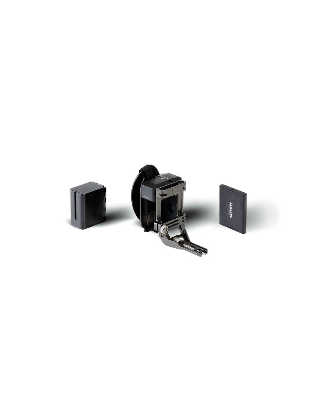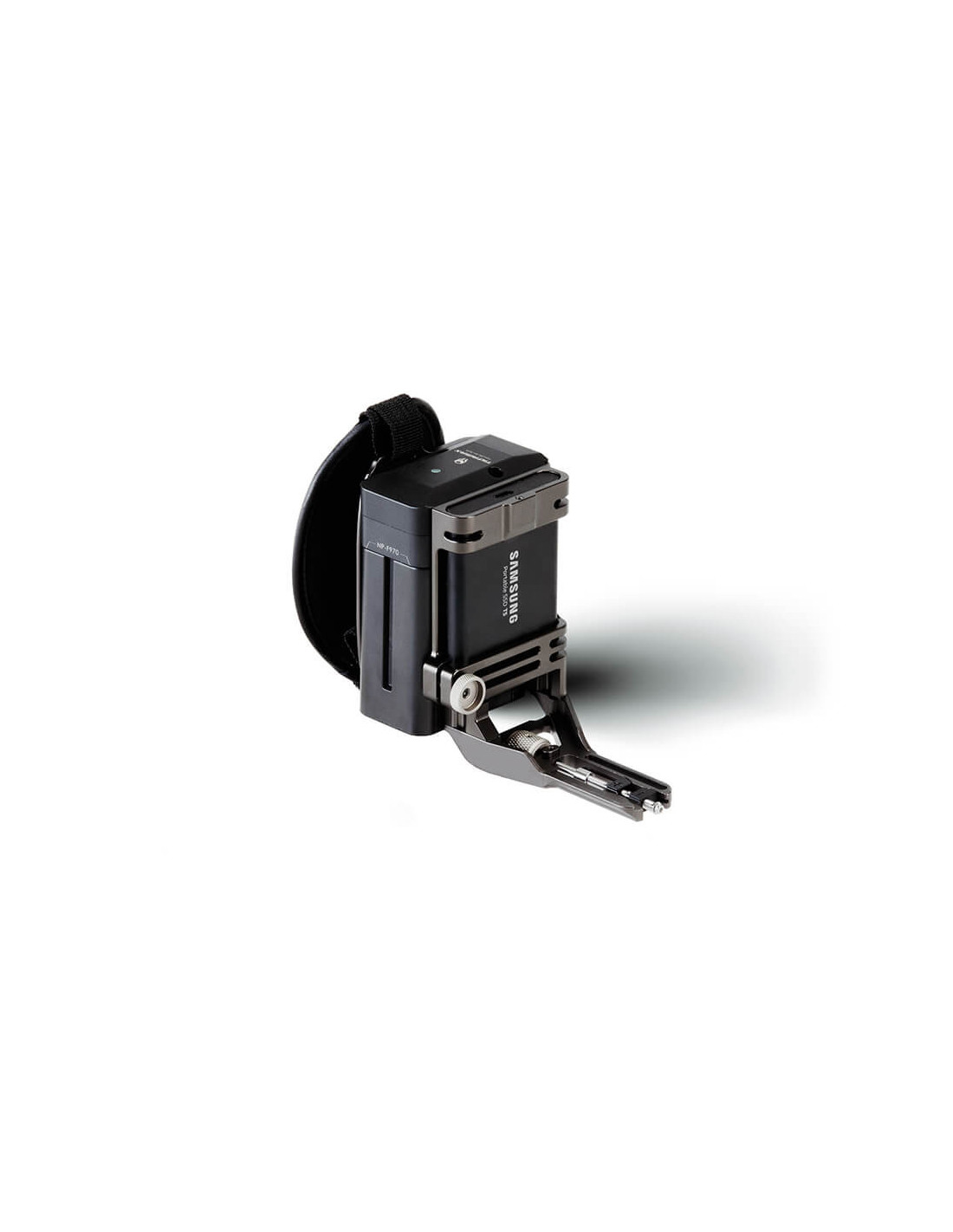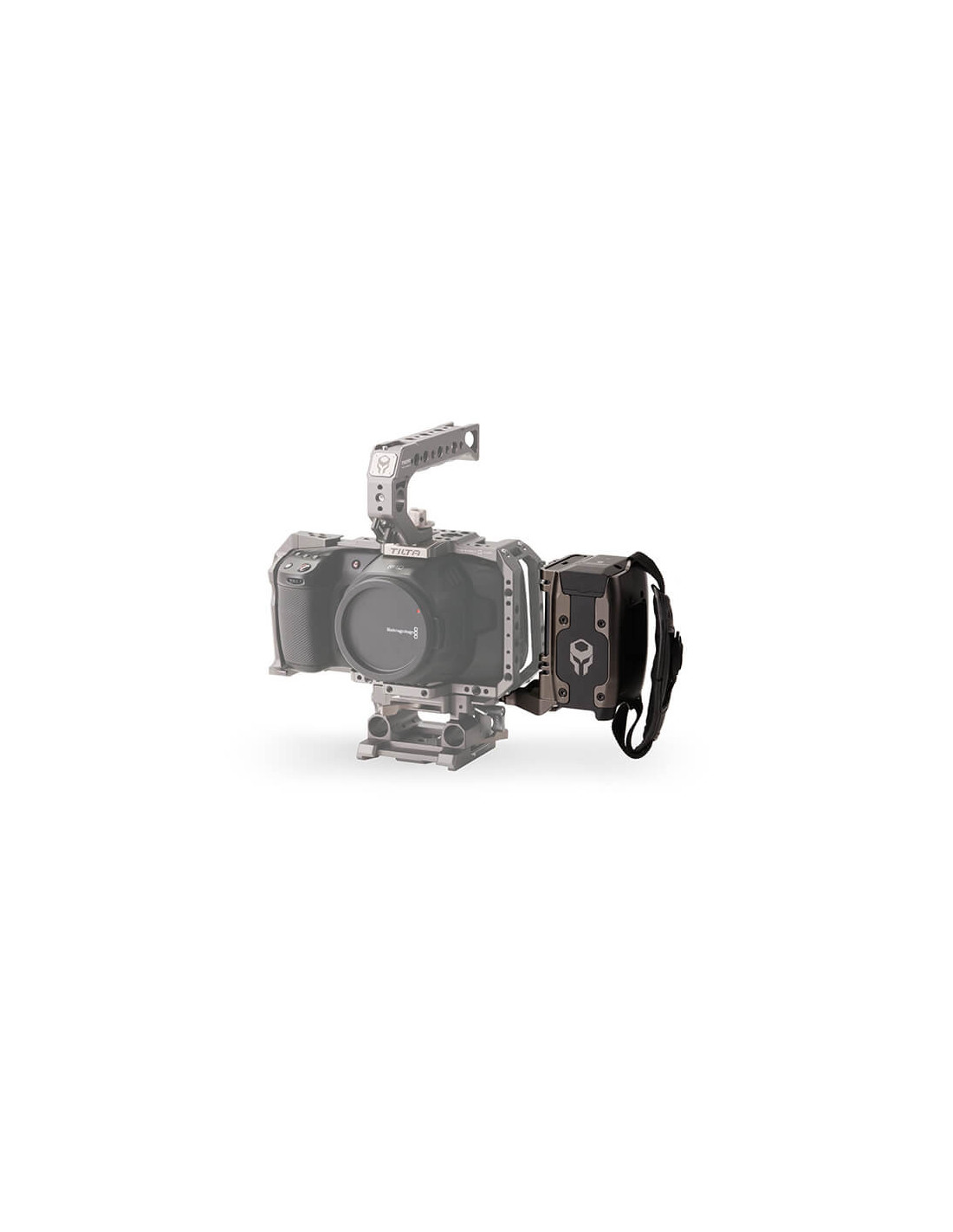 Side Power Handle Type I (F970 Battery) – Tilta Gray This side handle slides onto the base of the half and full Tiltaing camera cages. A battery port on the bottom of the handle allows you to use a Sony F970 battery to power the Nucleus Nano motor via the 8V Micro-USB power output. A 12V DC output is also integrated into the handle. The handle also has an integrated Samsung T5 SSD card holder.