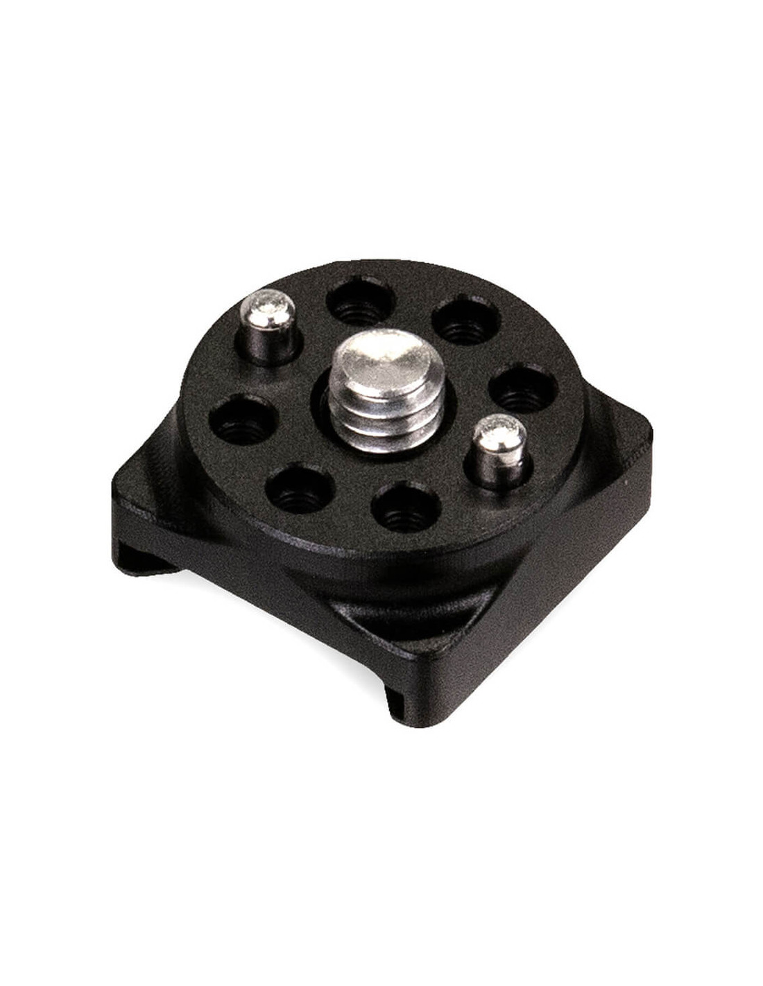 This attachment mounts to any of the ARRI-lock 1/4″-20 screw holes on the Tiltaing camera cages to provide a cold-shoe receiver mount. This allows you to mount any cold shoe-based accessory to your setup.