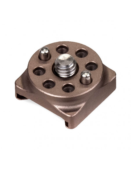 This attachment mounts to any of the ARRI-lock 1/4″-20 screw holes on the Tiltaing camera cages to provide a cold-shoe receiver mount. This allows you to mount any cold shoe-based accessory to your setup.