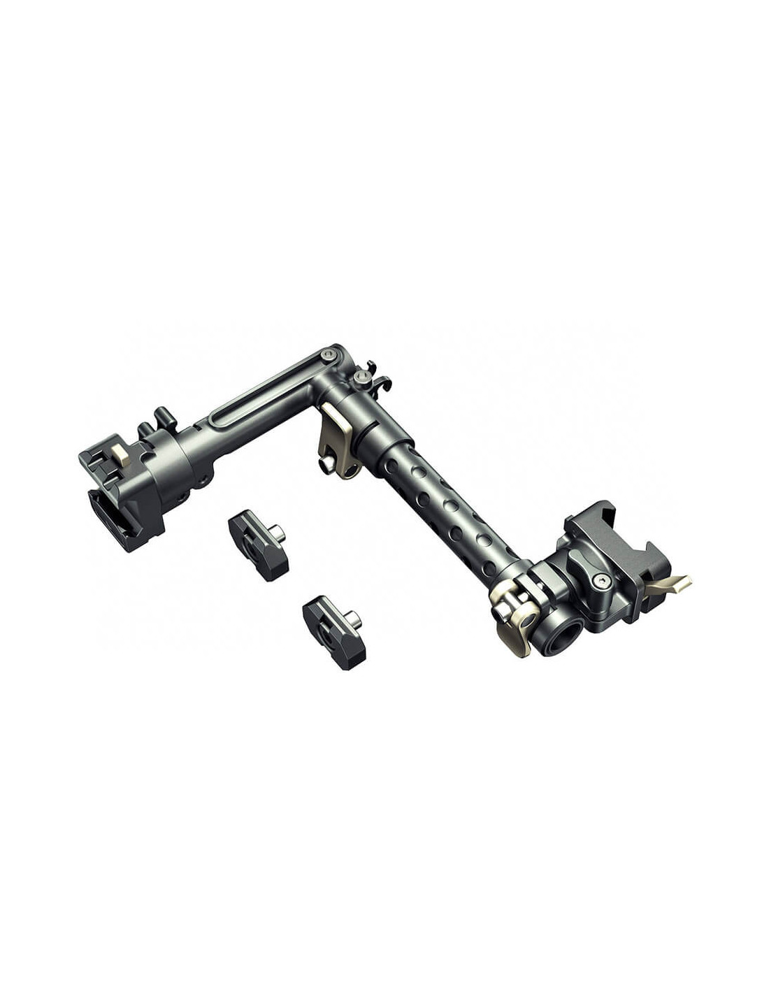 This Viewfinder Extender allows you to mount the BMPCC 6K Pro ViewFinder further away from the camera body, allowing for increased flexibility when operating. The Extender uses the NATO rail on the left side of the Full Camera Cage for BMPCC 6K Pro. It can then be further secured via a ¼”-20 thread. The Extender can then be adjusted to various lengths and features multiple rotating axes which allows for a variety of positioning options. This is incredibly useful when shooting in bright outdoor environments, or when utilizing a shoulder rig like our Dovetail Shoulder Mount Systems. NOTE: The EVF Extension Cable is not included