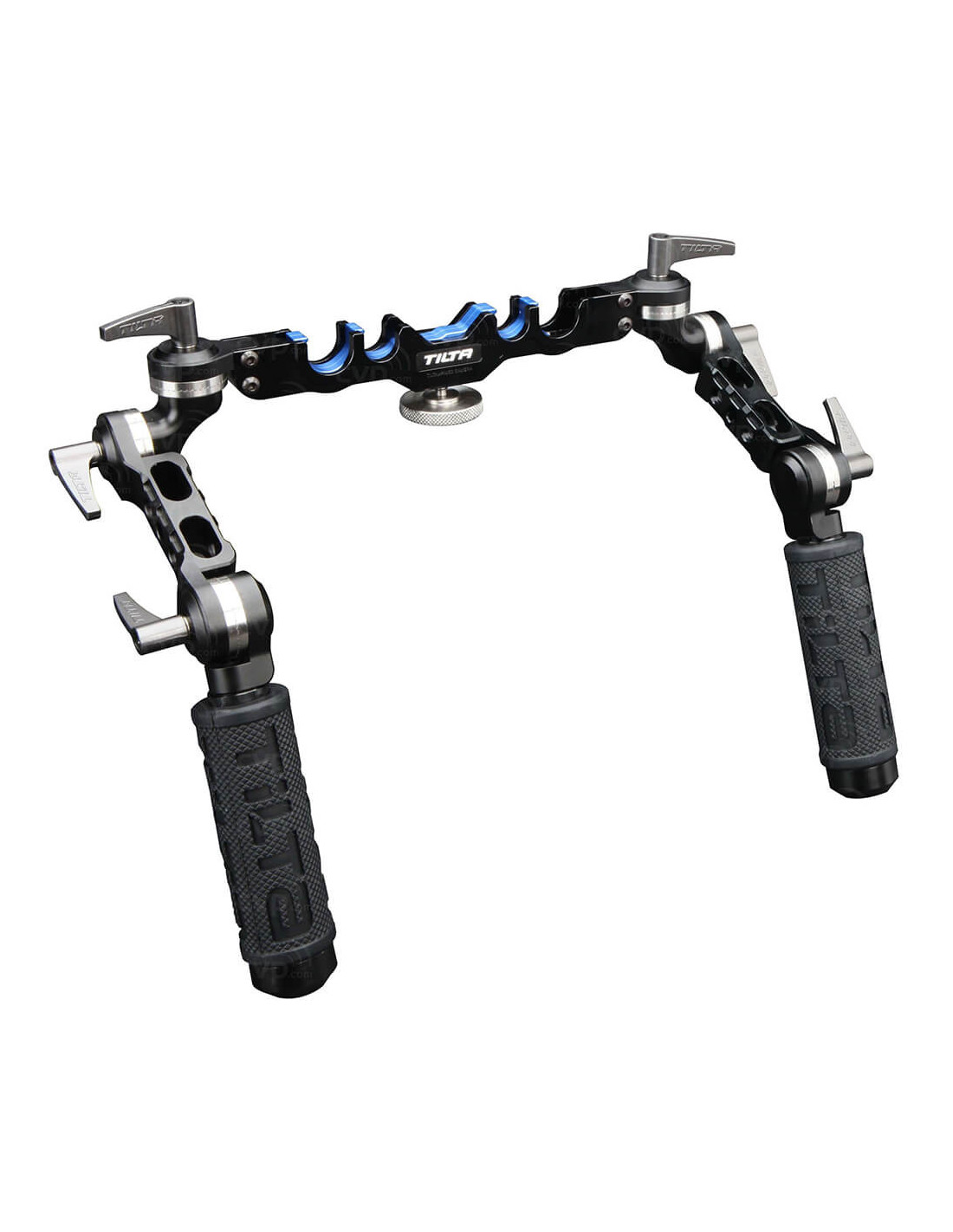 Universal Handgrip System The Tilta Universal Handgrip is a flexible handgrip system that attaches to either 15 mm lightweight or 19mm studio support rods. It consists of a rod bridge and two handgrips. Each handgrip consists of one 90° bend, a short extension, and a rubber hand grip. Each component of the handgrip assembly can be removed, and you can configure the system to suit your needs. The rod bridge features a single knob that tightens/loosens the rod clamps so it is quick to mount or remove. The assembled system has six points of adjustment, three for each hand, so you can configure the handgrips so they are the most comfortable for you. The adjustment points feature Arri compatible rosettes and spring loaded locking levers. The rubber handgrips provide you with a comfortable sure grip. Material of Construction CNC machined aluminum Dimensions Boxed: 14 x 6.75 x 3.25" (35.6 x 17.1 x 8.3 cm) Weight Shipping: 2.8 lb (1.3 kg)