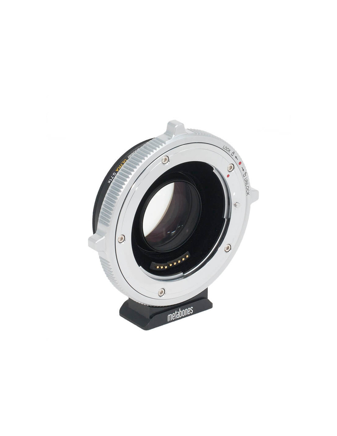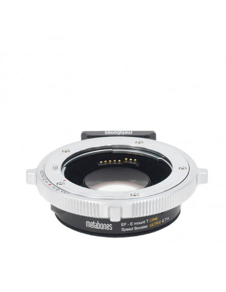 Canon EF Lens to Sony E -mount T CINE Speed Booster ULTRA 0.71x Sharper corners, less distortion, reduced vignetting New optical design: advanced 5-element/4-group optical design incorporating ultra-high index tantalum-based optical glass to achieve extraordinary optical performance with improved corner sharpness, distortion and reduced vignetting. Like the revolutionary original Metabones Speed Booster announced in January 2013, the Speed Booster ULTRA has a magnification of 0.71x, and so it effectively reduces the crop factor of mirrorless cameras with DX-sized sensors, such as Sony E-mount and Fuji X-mount cameras, from 1.5x to 1.07x. However, the new ULTRA design makes very effective use of exotic materials at the furthest limit of glassmaking technology, and as a result is well corrected for use with virtually all full-frame SLR lenses regardless of exit pupil distance. Thus, the Speed Booster ULTRA performs extremely well with professional-grade f/2.8 zoom lenses such as the 24-70mm f/2.8 and 70-200mm f/2.8 zooms by Canon and Nikon to produce 17-50mm f/2.0 and 50-142mm f/2.0 high-speed zooms, respectively. Similarly, high-speed fixed focal length lenses such as a 50mm f/1.2 will be transformed into a 35.5mm f/0.9 lens with excellent contrast and resolution from the center all the way to the edges of the im Tested Camera Bodies: A9, A7R IV, A7R III, A7R II, A7R, A7S II, A7S, A7III, A7II, A7 (APS-C Crop mode) A6500, A6400, A6300, A6000, A5000 PXW-FX9 (Crop mode) PXW-FS7M2, PXW-FS5, PXW-FS7, NEX-FS700, NEX-FS100 VENICE NEX-EA50, NEX-VG900, NEX-VG30, NEX-VG20, NEX-VG10 NEX-7, NEX-6, NEX-5R, NEX-5N, NEX-5, NEX-C3, NEX-3 Specifications: Camera Mount Sony E (APS-C) Lens Mount Canon EF Magnification 0.71x Optical Design 5 Elements in 4 Groups
