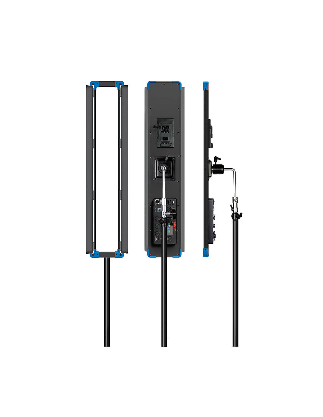 VANGO-100L, the slim portable size 100W RGBW panel of 3x0.5’ Long Ratio size and with extreme high color light output, equivalent to regular 300W RGB color light intensity, for your flexible video studio setup.
