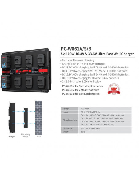 MATRIX-S8 8×100W Ultra fast V-mount Wall Charger