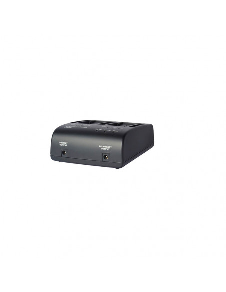 SWIT S-3602V Dual Charger/Adapter The SWIT S-3602V Dual Charger/Adapter has two charging channels with 7-8.4 VDC, 2A output each for simultaneously charging two batteries. It is compatible with the SWIT S-8823 and JVC BN-VF823 batteries. Four-level LED charging indicators for each channel indicate the percentage of charge remaining. The dual charger also has two 5.5/2.1mm DC pole sockets to provide 8.4 VDC, 3.5A (total) adapting output for other accessories. Both channels can simultaneously provide DC output to the connected cameras/accessories or one channel can be used to charge a battery by dropping it in, while the other can be used to adapt to a camera/accessory. Technical data: AC Input Power 100 to 240 VAC, 50 / 60 Hz Output Voltage 8.4 VDC at 1.8 A Chemistry Lithium-Ion Maximum Wattage 50 W Operating Temperature 32 to 104°F / 0 to 40°C Dimensions 5.4 x 4.3 x 1.9" / 136 x 110 x 47 mm Weight 12.7 oz / 360 g