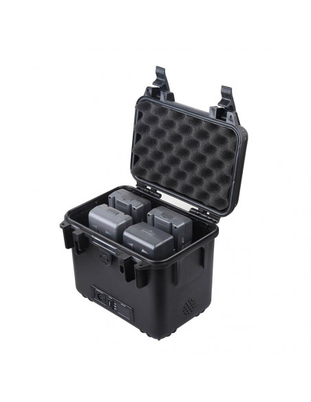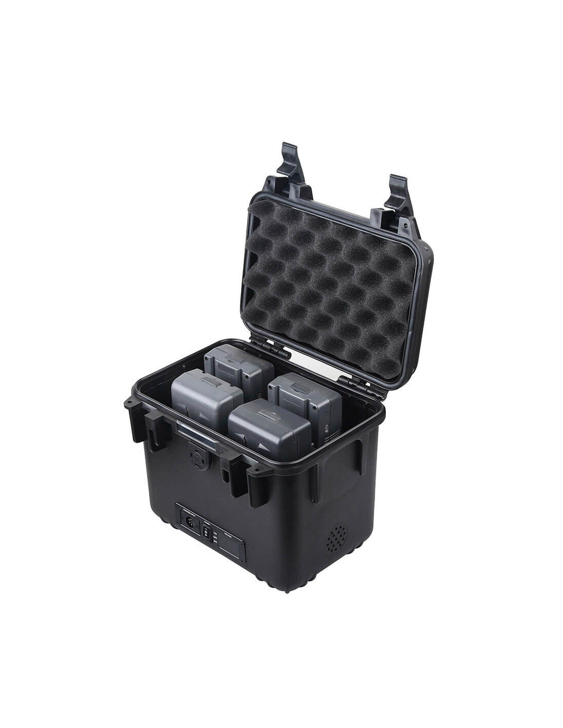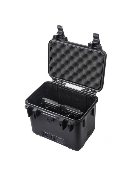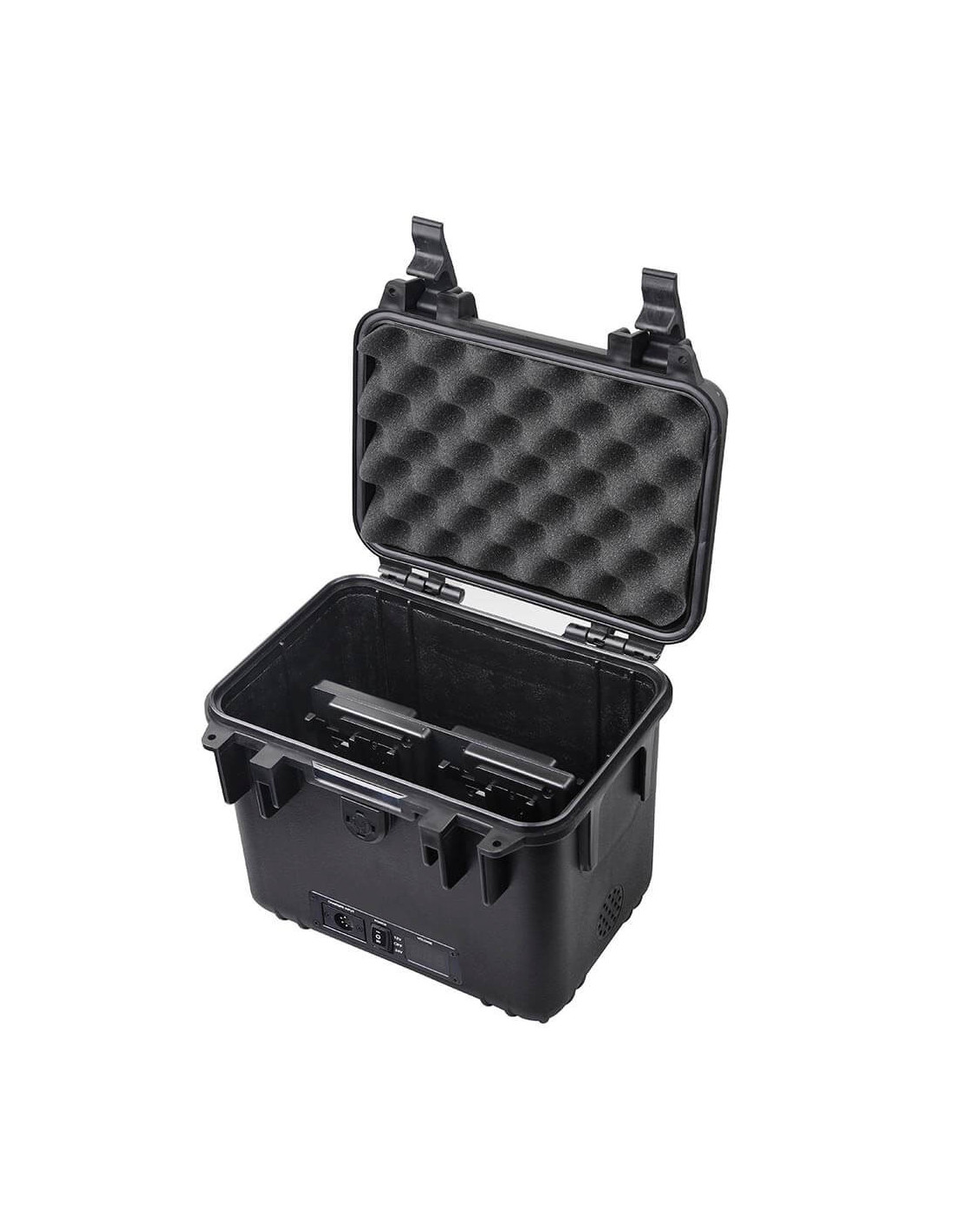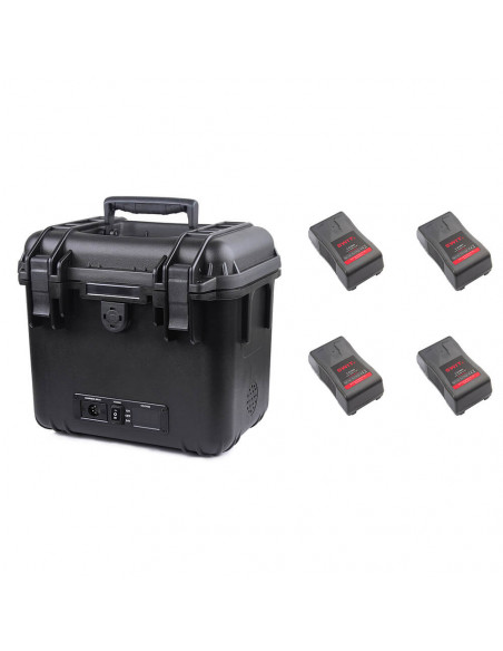 Swit S-4020 Power Box Kit Power Station Box Kit with 4x S-8180S 220Wh Batteries -12V/24V. Power Station Box (12V/24V) Long-lasting power solution for high draw devices S-4020 power station box can install 4 pieces of V-mount batteries which can provide more power and longer power supply time comparing to single Li-ion battery. It can meet the demand of different users, and is very suitable for Cine cameras, lightings for Film & Television and mobile studios. PP+ Fibre glass case, strong and durable S-4020 adopts PP+ fibre glass case which is high intensity, high toughness and high temperature resistant. Power with 4 V-lock batteries, portable and usable Considering the size, weight, power efficiency, and usability, S-4020 is designed to be powered with 1-4 V-lock batteries, which are widely used and easy to find. The following SWIT V-mount batteries will fit in the box: S-8320S, S-8340S, S-8083S, S-8113S, S-8183S, S-8082S, S-8110S, S-8180... What´s in the box: 1x Power Station Box (12V/24V) 4x 220Wh High Load V-mount Battery Pack Specifications: Power Station Box (12V/24V) Input DC 16.8V 5A (Charging) Output DC 11-16.8V 15A(180W)/DC 22-33.6V 15A(360W) Working temperature: 0°C~+40°C Working humidity: 10%~90% Storage temperature: -15℃~﹢60℃ Dimensions 290mm x 221mm x 278mm Net weight 3.45Kg 220Wh High Load V-mount Battery Pack Nominal Voltage 14.4V Capacity 220Wh/15.3Ah Max output power 140W Max output current 12A Mount Type V-mount Operation Temperature 0-40°C Net weight Approx 1.3kg Dimensions 165×90×66mm