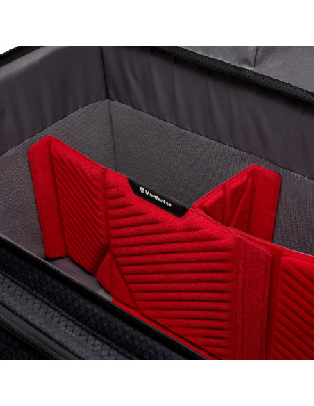 Bag for camera equipment with M-guard dividers and EVA thermoformed lid for optimal protection.