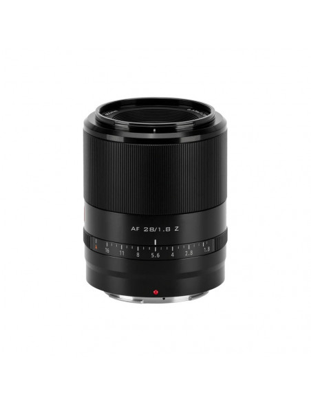 Viltrox AF 28mm F/1.8 Nikon Z mount The Viltrox AF 28mm F/1.8 Nikon Z mount that is compatible with Nikon full frame cameras. This lens has a fast F1.8 aperture that provides a nice bokeh and allows you to take pictures in low light environments. A special feature of this lens is that it supports Eye AF, making it possible to automatically focus on the subject's eyes. This is particularly useful when photographing people and animals. The Viltrox AF 28mm F/1.8 Nikon Z mount also has an autofocus function that focuses quickly and accurately on the subject. In addition, this lens can be upgraded via USB to improve performance and add new features. The lens has a metal body that provides durability and a luxurious look. In addition, the Viltrox AF 28mm F/1.8 Nikon Z mount is lightweight and compact, making it easy to take with you while traveling., Model: AF 28/1.8 Z Mount type: Nikon Z mount Focus method: AF Lens elements: 9/11 Focus length: f=28mm Viewing angle: 74.6º Frame: Full frame Max. Aperture: F1.8 Min. aperture: F16 Aperture blades: 9 Focusing range: 0.37m â Focusing mechanism: internal focus Focusing mode: AF/MF Focusing motor: STM+lead screw Filter size: â55mm Magnification: 0.1X Weight: ~367g Outer diameter size: â70mm x 88.2mm 2 year warranty , 1x Viltrox AF 28mm F/1.8 Nikon Z mount 1x lens hood 1x rear cap 1x lens cap 1x carrying case 1x user guide
