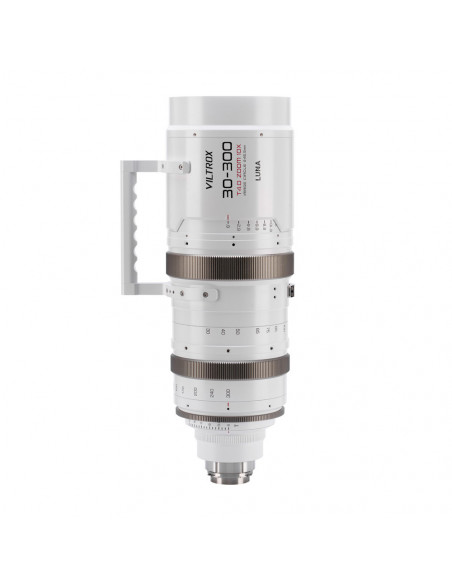 A new standard in cinematic excellence Viltrox is proud to unveil the Viltrox LUNA 30 300mm T4.0 10x Cine Zoom, the groundbreaking additions to their LUNA series, designed to meet the demands of high end consumers with precision and versatility. The LUNA series is notable for the striking white design of the lens body, which sets it apart from conventional lenses. In addition to its aesthetic appeal, the lens delivers exceptionally high image quality, making it a versatile lens for a variety of shooting environments. Highlights Ergonomic design Optical superiority 10X zoom range Adjustable back focus Built in filter system 10X zoom range The LUNA 30 300 offer an impressive zoom range of 10x. range, for a wide range of shooting needs, making it an essential tool for professionals. Consistent focus plane Regardless of focal length, the lens maintains a stable focusing plane, ensuring sharpness and clarity at all settings. Adjustable back focus Tailored to various cinema cameras, the adjustable backfocus allows micro tuning and ensures perfect alignment with your equipment. Minimal distortion and breathability The lens exhibits minimal distortion and breathability, even at short focal lengths, for a true to life visual experience. Uniform control angles Focus and zoom angles are consistent with other lenses in the LUNA series, for seamless control. Durable stainless steel mount Equipped with a hard wearing stainless steel mount, the lens is built for long term durability and reliability. High compatibility LUNA series lenses offer high adaptability with adjustable flange distance, making them suitable for various cinema cameras. Smooth operation The lens features smooth focusing and zooming processes with no noticeable vertical shift during focus adjustments. Built in filter system A convenient built in filter system, which you can easily replace by unscrewing the rear lock, ensures effortless adaptation to different shooting environments. Stable parfocal zoom The lens stays in focus throughout its 200m range, ensuring consistency in every shot. Ergonomic design With a built in handle and standard 3/8 inch threaded mount, the lens is designed for ease of use and versatility on set., Model: 30 300 T4.0 Lens mount: PL mount Image size: 46.5 mm Lens elements: 33/23 Focal length: 30 300 mm Aperture range: T4.0 T22 Number of aperture blades: 8 Minimum object distance: 6'ft Field angle: Horizontal: 7.83º 70.25º, Vertical: 4.19º 39.65º; Diagonal: 8.82º 77.85º Aperture control: Manual (ring can be rotated 60º) Focusing: Manual (ring can be rotated 290º) Zoom control: Manual (ring can be rotated to 200º) Front aperture diameter: â 165 mm Gear ratio: M0.8 Filter is rear mounted and has a magnetic suction function Features a back focus compensation adjustment structure The lens has a high definition nano multilayer coating and the front lens has a waterproof coating. Lens dimensions: â 173 x 511.3 mm Weight: ~15 kg 2 year warranty