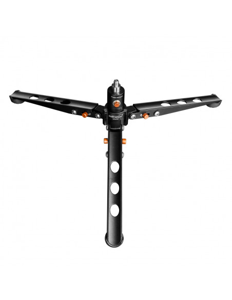 Especially with the use of heavy film lights or flash heads, a sturdy, stable tripod is indispensable. However, as soon as camera positions or image perspectives near the ground are desired or a heavy flash head are used for background illumination, conventional tripods can no longer be used: due to their type of construction, they can not be retracted far enough or not be adjusted deep enough to the light source or the camera position accordingly.