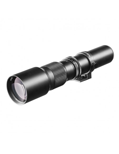 The walimex 500/8.0 Lens has a focal distance of 500mm and a lens speed of 1:8-32 which is set using the aperture ring. The sturdy metal housing and the high-quality workmanship and mechanics ensure a good image quality. With the help of the sturdy tripod mount ring the lens can be fastened to a tripod with an optimised balance point. Focusing takes place manually. The lens can be used with aperture priority and manual exposure setting. Thanks to the easy handling, the lens is also especially suitable for beginners.