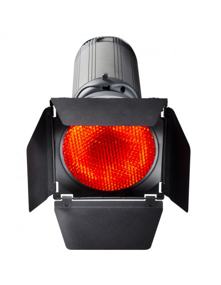 The light can be selectively shaped with the barn doors. It is possible, for example, to create only a thin strip of light as an accent in the background, or to specifically shadow a certain area. The 180-degree tiltable flaps give you maximum freedom. The entire attachment can be rotated freely so that almost any lighting requirement can be met.