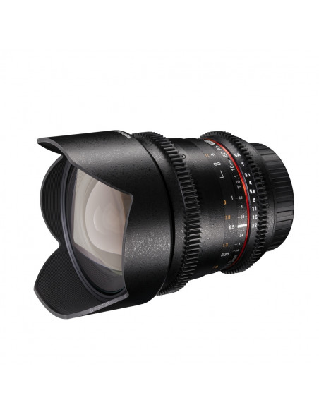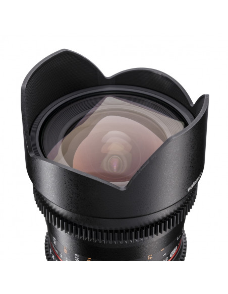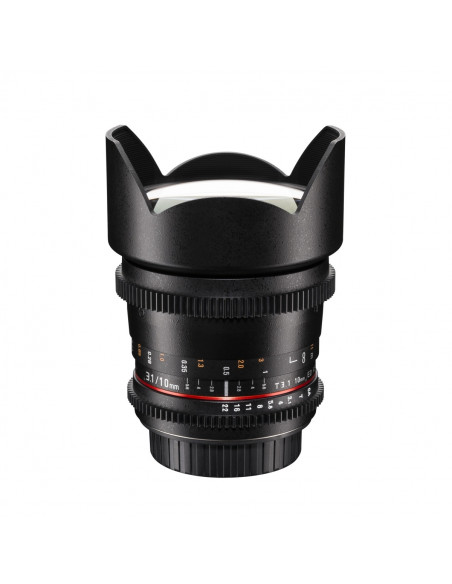 With the walimex pro 10/3,1 Video APS-C your are well equipped for videography as well as photography, without time consuming changing of lenses. The aperture can be infinitely adjusted, which minimizes transitions in exposure time. Both the aperture ring and the focus ring are provided with a gear rim and have thus been optimized for use with focussing facilities (Follow Focus Systems).