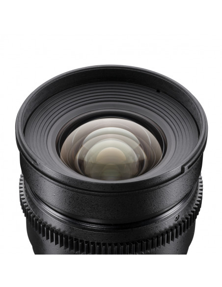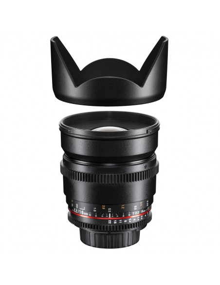 With the wide angle lens from walimex pro your are well equipped for videography as well as photography, without time consuming changing of lenses. The aperture can be infinitely adjusted, which minimizes transitions in exposure time. Both the aperture ring and the focus ring are provided with a gear rim and have thus been optimized for use with focussing facilities (Follow Focus Systems). Lens for APS cameras!