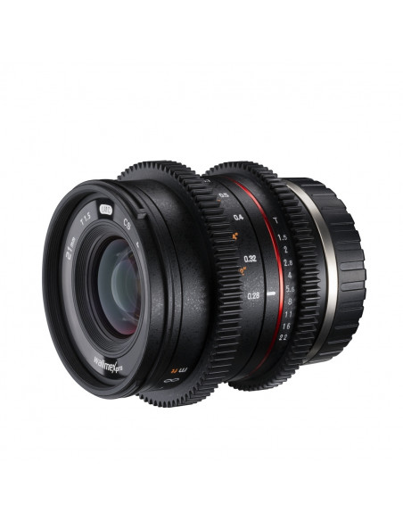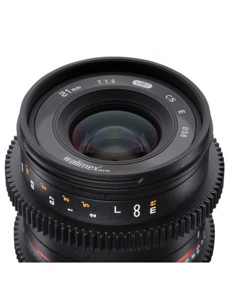 The walimex pro 21/1.5 VCSC is specially designed for APS-C sensors and for Canon M, Fuji X, Sony E and Samsung NX connectors.