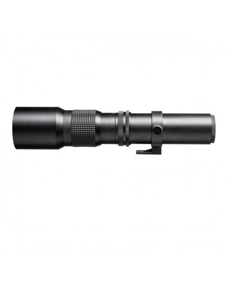 The walimex 500/8.0 Lens has a focal distance of 500mm and a lens speed of 1:8-32 which is set using the aperture ring. The sturdy metal housing and the high-quality workmanship and mechanics ensure a good image quality. With the help of the sturdy tripod mount ring the lens can be fastened to a tripod with an optimised balance point. Focusing takes place manually. The lens can be used with aperture priority and manual exposure setting. Thanks to the easy handling, the lens is also especially suitable for beginners.