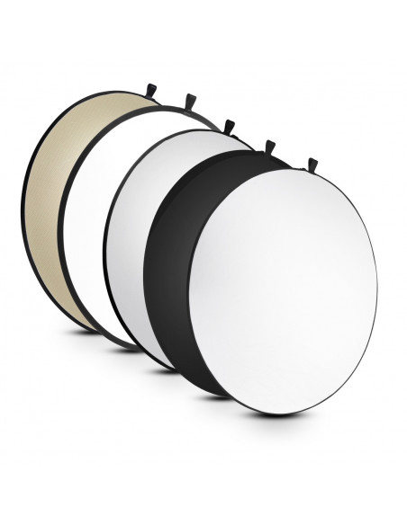 Due to their design, round reflectors are ideal for both portrait and product photography. Whether as brightening or effect light, these reflectors are always the first choice. Usually such reflectors are held by an assistant, but it is also possible to fasten them with universal clamps or hang them on the loop.