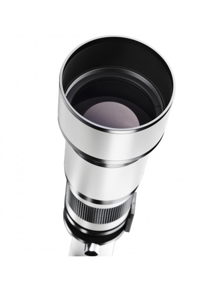 The walimex pro Telezoom Lens has an unusually long focal distance range of 650-1300mm at a speed of 1:8.0-16 (depending on focal distance). The sturdy metal casing and the high-quality coated glass lenses ensure a good image quality. The internal focusing (i.e. the front lens does not turn while focusing) enables the unproblematic use of polarising and graduated filters. With the help of the sturdy tripod mount ring the lens can be fastened to a tripod with an optimised balance point (because of the long focal distance we recommend the use of a tripod in order to achieve vibration-free exposure). With a comparatively short closest focusing distance of only 5 metres, the lens enables a sensational magnification at 1300mm. Focusing takes place manually. The lens can be used with aperture priority and manual exposure setting. Thanks to the easy handling, the lens is also especially suitable for beginners.