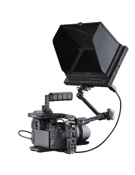 The lower part of the anti-twist safeguard can be attached simply with two 1/4 inch screws (provided) to a rig or cage. The adapter is made so that the swivel arm can be attached to other surfaces, if desired, such as to wood or concrete. Two elongated holes ensure that the holes can be spread at varying distances from each other. The swivel arm is screwed into the 1/4 inch inner thread of the anti-twist safeguard using its 1/4 inch threaded bolts an can also be fixed with the wing bolt provided.