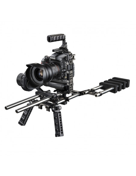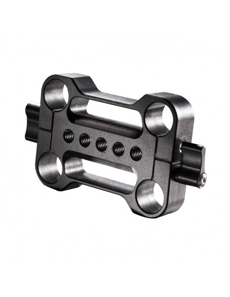 The Aptaris Clamp double was created to attach a second pair of rods to an existing pair of rods at a different height on your rig. In practice, this is necessary if rods need to be brought closer to the lens, for example for follow focus or for a lens support. Alternatively, this Rod Clamp double can also be used behind the camera to position the shoulder support higher or lower.