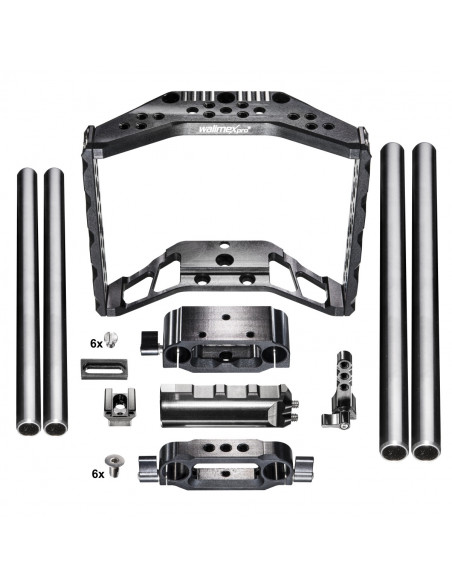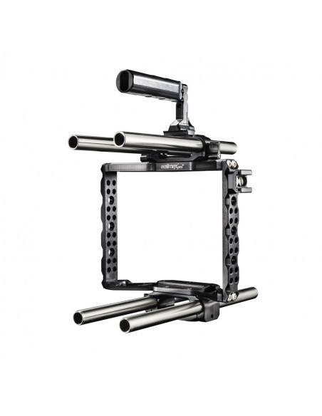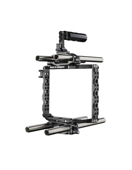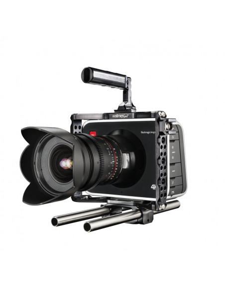 Specially developed for the popular Blackmagic Design Cinema 2.5 K and Production Camera 4 K film cameras, the system adapts 100% to your camera. The camera is simply attached to the cage via its 1/4 inch thread.