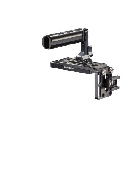 This very strong and ergonomically shaped handle can be mounted around the Aptaris Cage and Cages with ¼ inch threads as desired by using the Mini-Rails included in the scope of delivery. The L-bracket, which is also included in the scope of delivery, gives you full flexibility. At the same time the handle convinces with its very low weight, which is achieved by the use of very light aircraft aluminium. Just like the complete Aptaris system, the handle is also developed and manufactured in Germany.