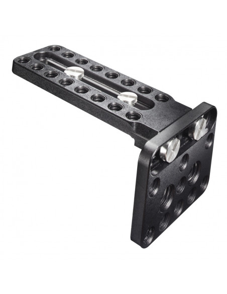 Coldshoe Mounting Plate Set The Coldshoe Mounting Plate Set is an extremely flexible solution for almost all cameras with a hot shoe. The plate is simply fastened to the camera by means of a hot shoe plate and fixed by 2 adjustable beams. The handle, which is also part of the delivery, is mounted via one of the many ¼ inch threads. For even more connecting possibilities the L-bracket is mounted to the plate by means of 2 ¼ inch screws. The also supplied hot shoe adapter is also fastened with 2 ¼ inch screws.