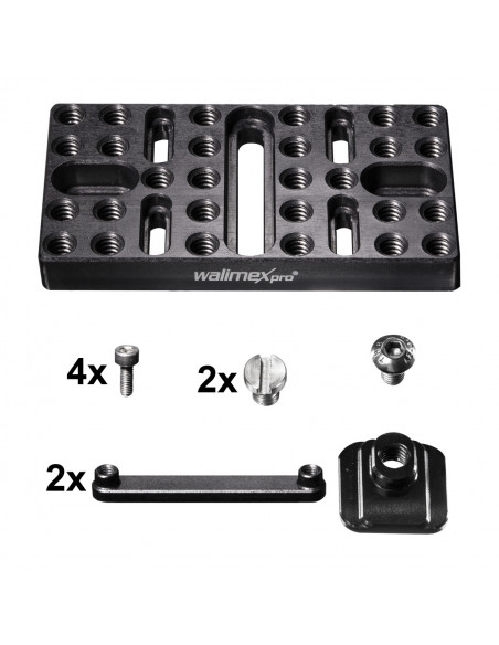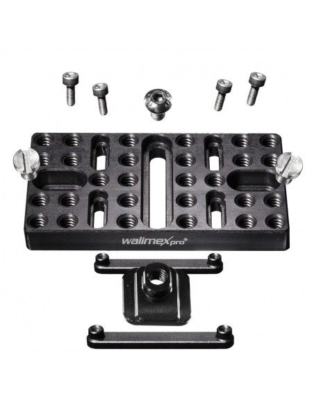 - Mounting plate to attach accessories to the hot shoe of a camera