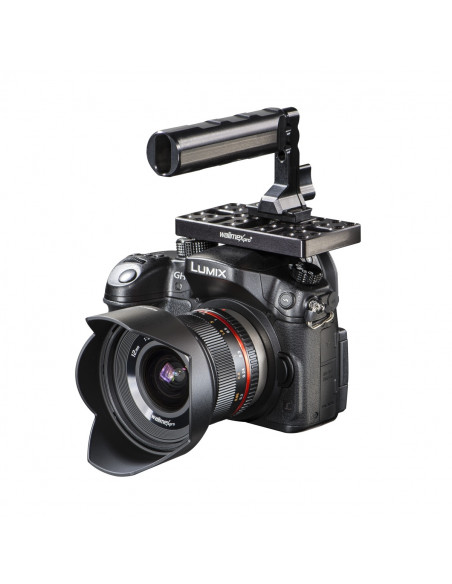The Aptaris Coldshoe Mounting Plate is an extremely practical and versatile accessory. It allows you to mount a handle or other accessories such as a microphone or film light easily and simply to the camera via several 1/4 inch threaded holes. The plate itself is attached directly to the hot shoe of your camera. A freely adjustable screw device ensures a secure hold without slipping.