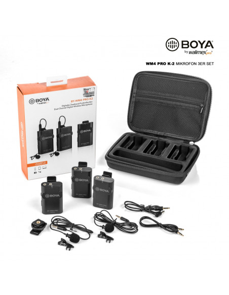 - 1x Walimex pro Boya WM4 Pro K-2 Microphone Set of 3, consisting of: