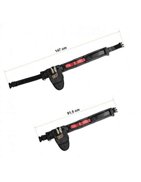 - Belt adjustable from 85 to 145 cm in length, click fastener with protection against unintentional opening