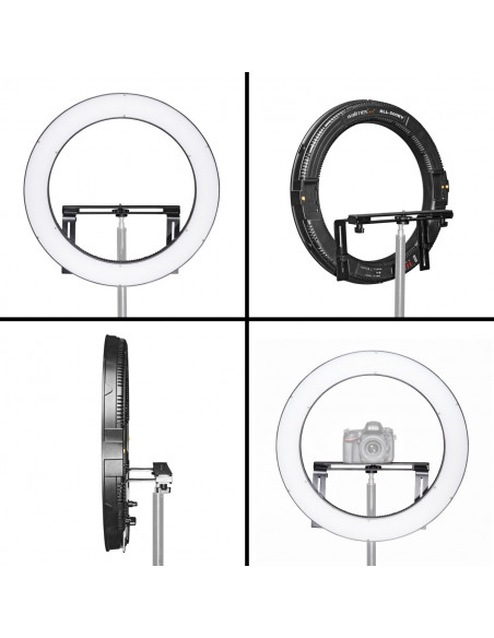 Ring lamps are very widely used in photography, but they do have disadvantages. With this ring lamp with LED technology, you can enjoy all the special features of a ring lamp, without having to put up with the disadvantages of older ring lamps. Thanks to the service life of the inbuilt LED lights, defective fluorescent tubes are a thing of the past.