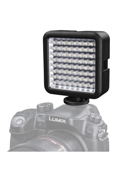 The video light, which is powered by 4 AA batteries, is the ideal solution for all Actioncams, like e.g. GoPro Hero, Camcorders and DSLR and with its 64 powerful LEDs it ensures high light gain and thereby sufficient brightness in case of inappropriate ambient light. This is of advantage when shooting in the dark or in insufficiently illuminated rooms. The most convenient feature is the fact that the light intensity can be infinitely dimmed.