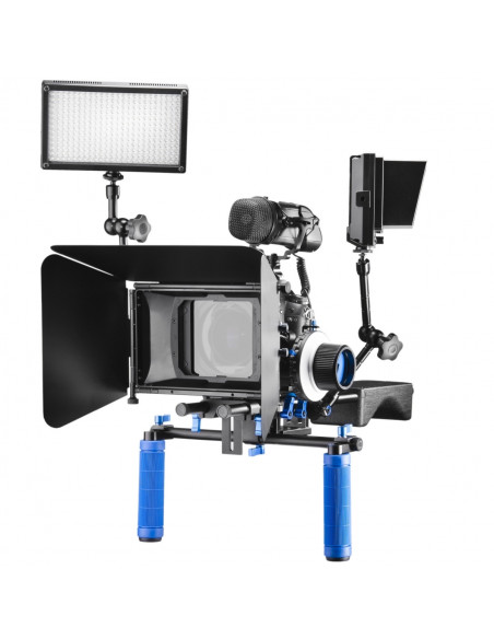 The neutral-density filter ND 2 from walimex with a value of 0.3 reduces the light incidence by 50 % or 1 aperture. With this neutral-density filter you can film with open aperture even in bright sunlight or daylight. This is why it is preferably used if a blurring background is to be achieved despite bright sunlight. With its size of 4 x 4 it fits many Matte boxes, e.g. also for the walimex pro Director II. The filter is in this case simply pushed into the filter slot of the Matte box.