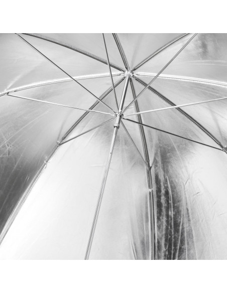 The reflex umbrella by walimex pro with a silver reflex surface and a white outside surface ensures a very good reflection capacity at a comparably very hard and cool light characteristic.