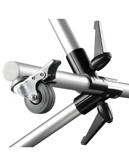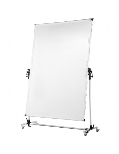 The rolling reflector panel by walimex pro supports you in your work anytime and anywhere – whether in the photo studio or on location. Due to its rolling aluminum frame and rotatable reflector frame, it is perfectly suited for use as main, high, effect or background lighting with a lighting setup. Additionally, the panel can be adjusted flexibly in its height and therefore to your individual needs. Of course the reflector panel is prevented from unintentional rolling with locking brakes so it can be used on sloping surfaces or in connection with wind machines without problems.