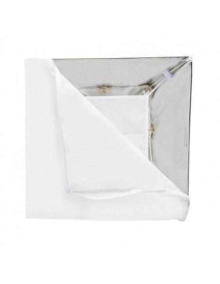 An absolute highlight of this Softbox is an innovative folding mechanism, which enables you to set up and use the Softbox in hardly no time at all and without the use of great force. This is obviously highly convenient, if you frequently have to change location during shooting sessions. The inside diffuser is simply attached by a velcro fastener, the outside diffuser can be directly put over it, so that the light can be controlled even easier. When not in use, the Softbox can be strapped down with a belt for space saving stowage.